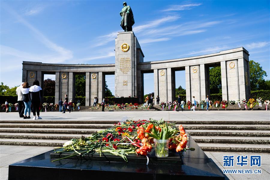 這是5月8日在德國首都柏林拍攝的蒂爾加滕蘇軍紀念碑一角。 當日,許多德國柏林民眾自發前往相關場所紀念第二次世界大戰“歐洲勝利日”75周年。 新華社發(張平攝)