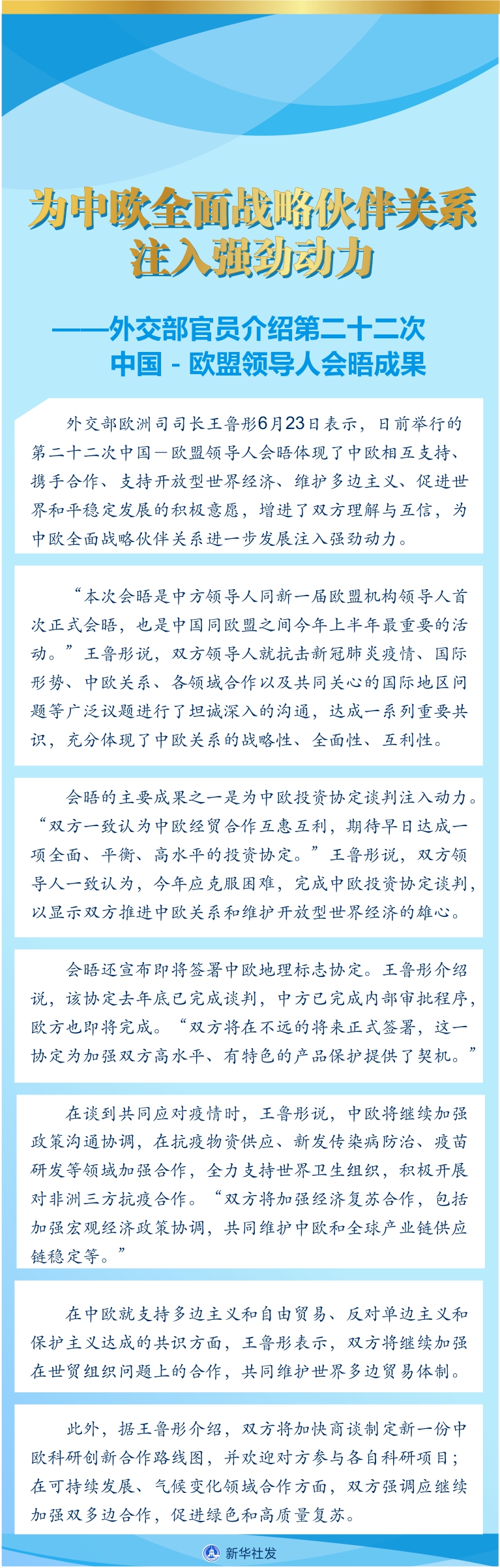 為中歐全面戰略伙伴關系注入強勁動力——外交部官員介紹第二十二次中國-歐盟領導人會晤成果-新華網