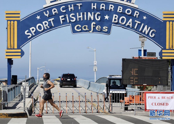 這是7月4日在美國洛杉磯縣拍攝的關閉的圣莫尼卡海灘。新華社發