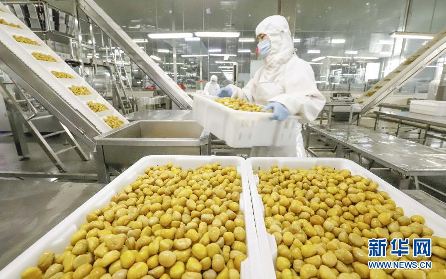 7月14日,工人在河北省遵化市一家外貿加工企業車間加工出口栗仁。當日,海關總署發布數據顯示,今年6月份,我國貨物貿易出口、進口首次迎來年內雙雙同比正增長,回升態勢好于預期。從月度看,自4月份起我國出口連續3個月實現正增長,6月份進出口同比增長5.1%。 新華社發(劉滿倉 攝)