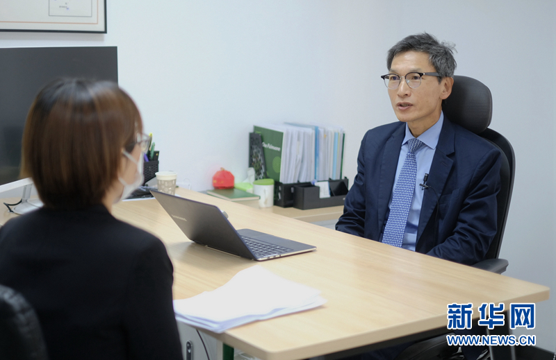 近日,韓國綠色食品企業圃美多中國CEO杜鎮雨接受新華網記者專訪。劉鐘靈 攝