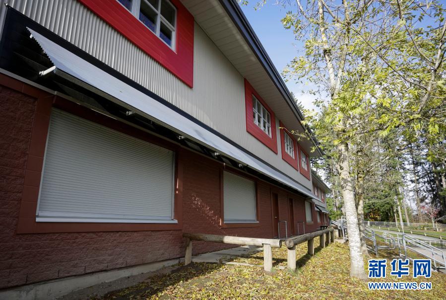 11月15日,在加拿大不列顛哥倫比亞省薩里,一所學校因出現新冠疫情關閉。新華社發(梁森攝)