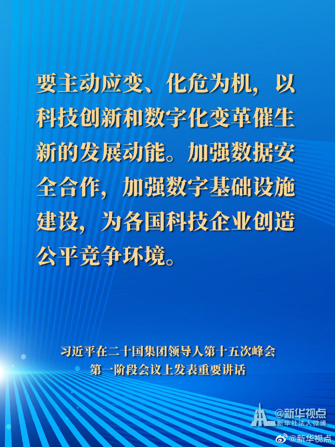 國家主席習近平21日晚在北京以視頻方式出席二十國集團領導人第十五次峰會第一階段會議并發(fā)表重要講話。以下是講話要點。