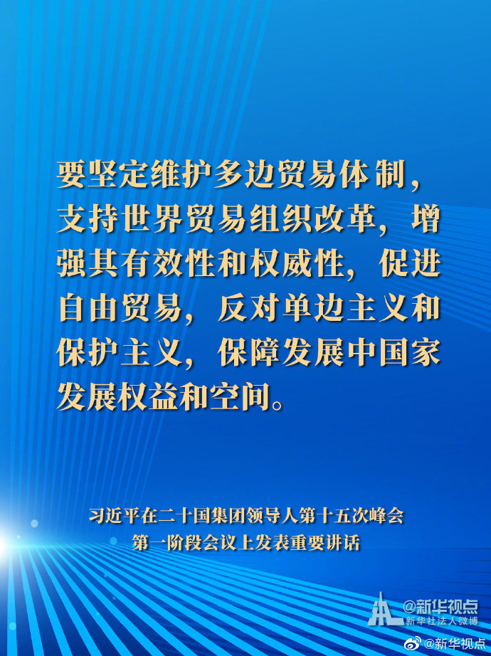 習近平在二十國集團領導人第十五次峰會第一階段會議講話要點