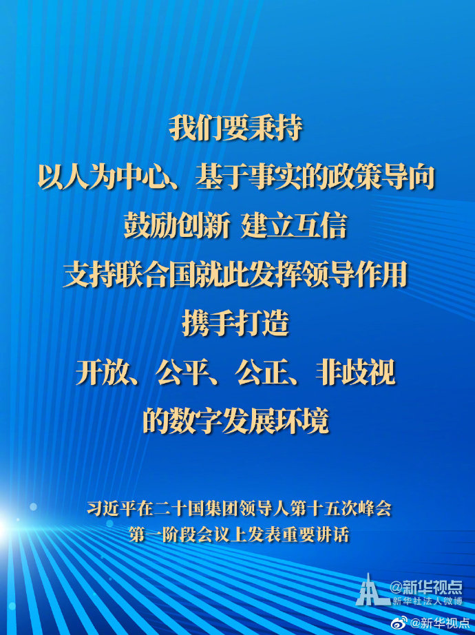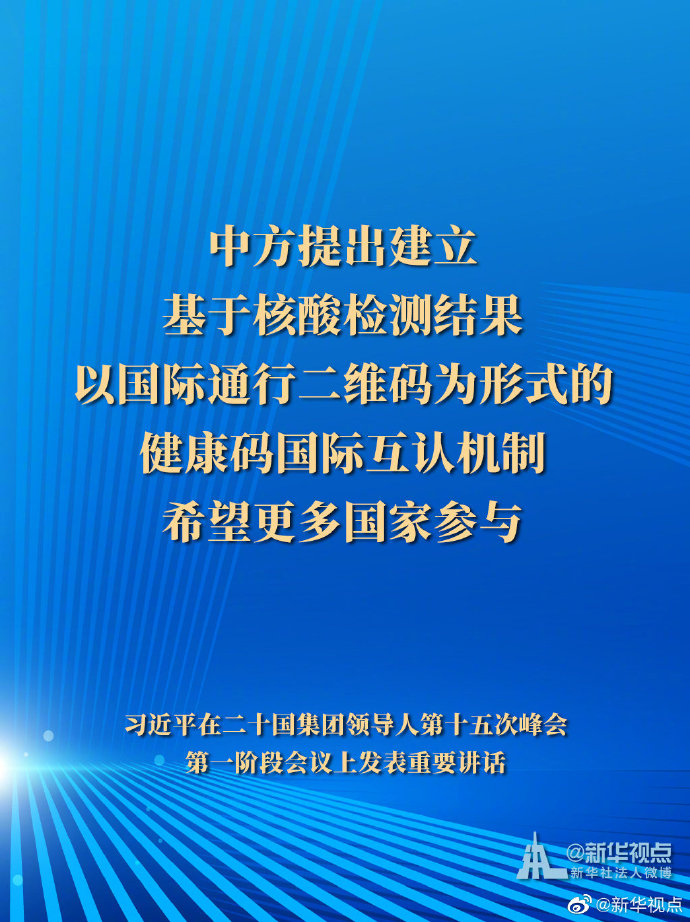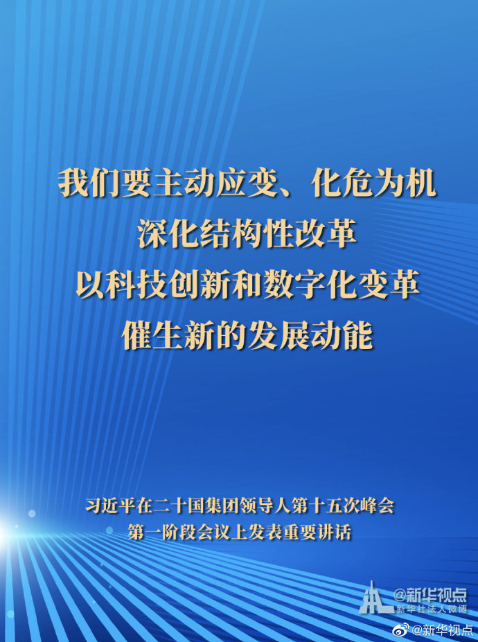 11月21日,國家主席習近平在二十國集團領導人第十五次峰會第一階段會議上發表重要講話。一起來看習主席的G20金句。