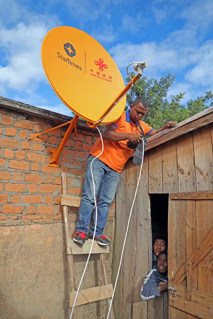 在馬達(dá)加斯加,來(lái)自塔那那利佛市區(qū)孤兒院的賈斯丁和伙伴們好奇地張望著接收電視信號(hào)的“小鍋蓋”。“接上這個(gè)天線我們就能看電視了,聽(tīng)說(shuō)電視里有很多世界各地的節(jié)目。”