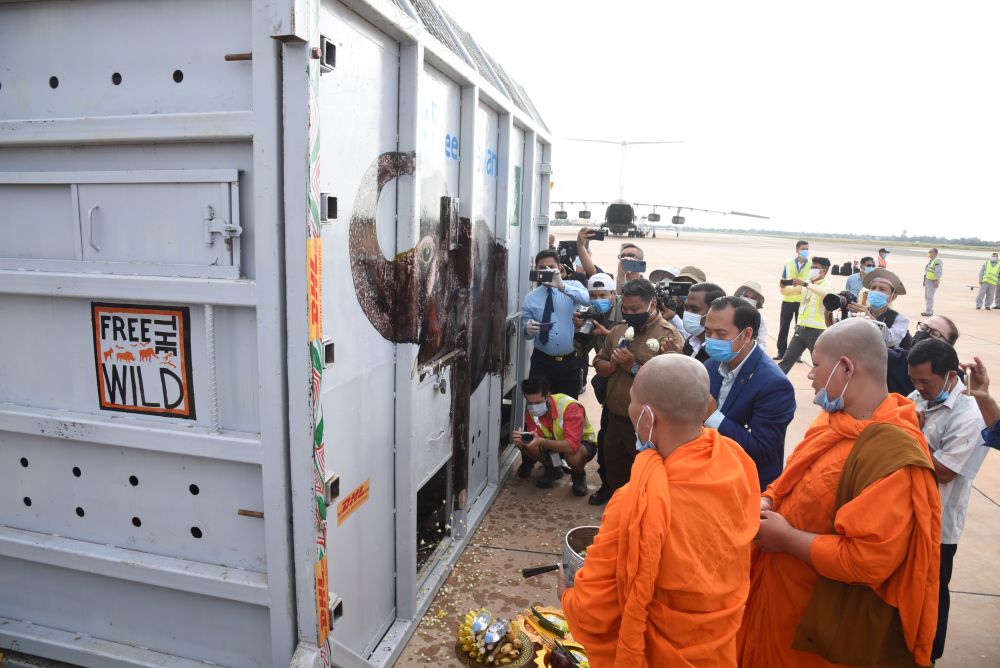 經(jīng)歷7小時(shí)飛行后,“卡萬”抵達(dá)柬埔寨東北部城市暹粒。然后它將經(jīng)歷數(shù)小時(shí)卡車運(yùn)輸?shù)诌_(dá)保護(hù)區(qū)——那里有80多頭象。