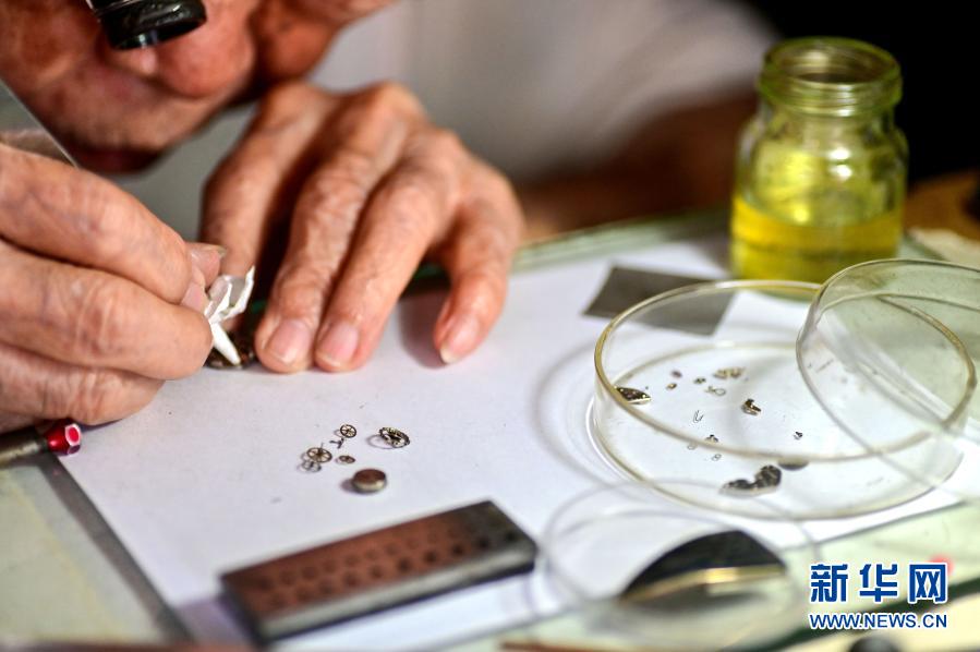 12月5日,在馬來西亞雪蘭莪州巴生的郁昌表行,韋華在維修手表。新華社發(張紋綜攝)