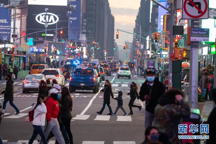 12月12日,行人走在美國紐約時報廣場上。新華社發 (郭克攝)