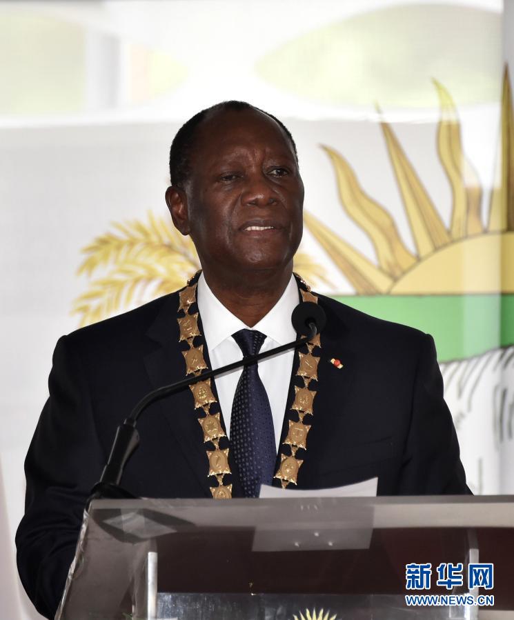 12月14日,在科特迪瓦阿比讓,瓦塔拉宣誓就職后發表演講。新華社發(伊萬·宋攝)