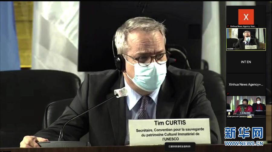 這張12月18日的視頻截圖顯示的是,聯(lián)合國(guó)教科文組織《保護(hù)非物質(zhì)文化遺產(chǎn)公約》秘書(shū)蒂姆·柯蒂斯在法國(guó)巴黎參加線上視頻會(huì)議。新華社發(fā)