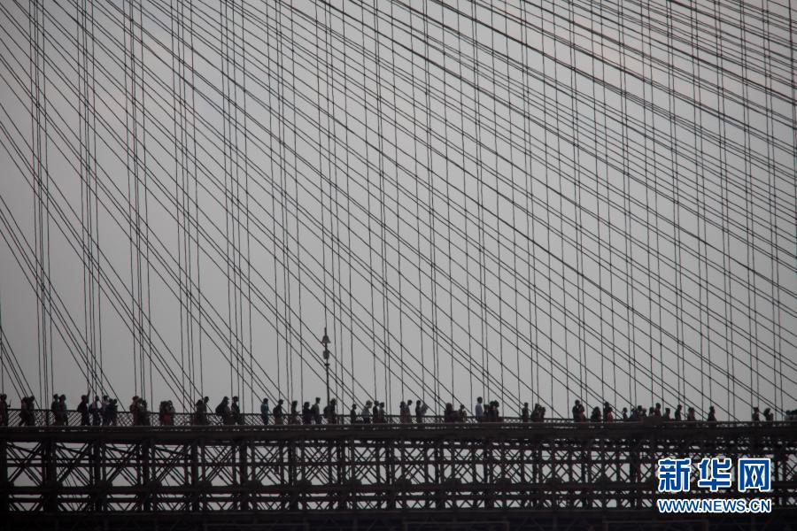 6月6日,抗議警察暴力執(zhí)法導(dǎo)致喬治·弗洛伊德死亡的示威人群走過美國(guó)紐約布魯克林大橋。新華社發(fā)(郭克攝)