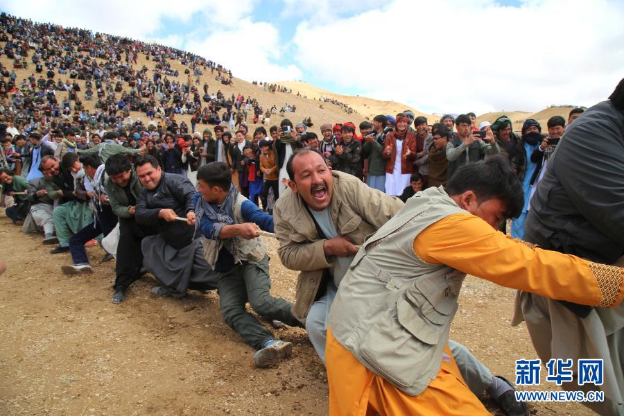 3月21日,人們在阿富汗巴米揚參加諾魯孜節拔河活動。當日,阿富汗民眾迎來諾魯孜節。新華社發(阿齊米 攝)