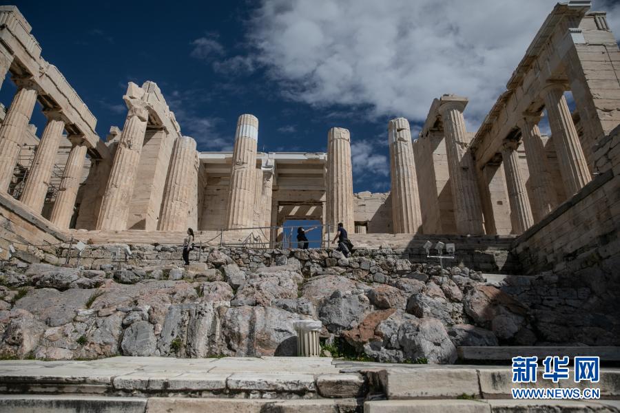 3月22日,游客游覽希臘雅典衛(wèi)城。希臘露天考古遺跡22日起恢復(fù)開放。游客需遵守保持社交距離和佩戴口罩等防疫規(guī)定。新華社發(fā)(萊夫特里斯·帕察里斯攝)