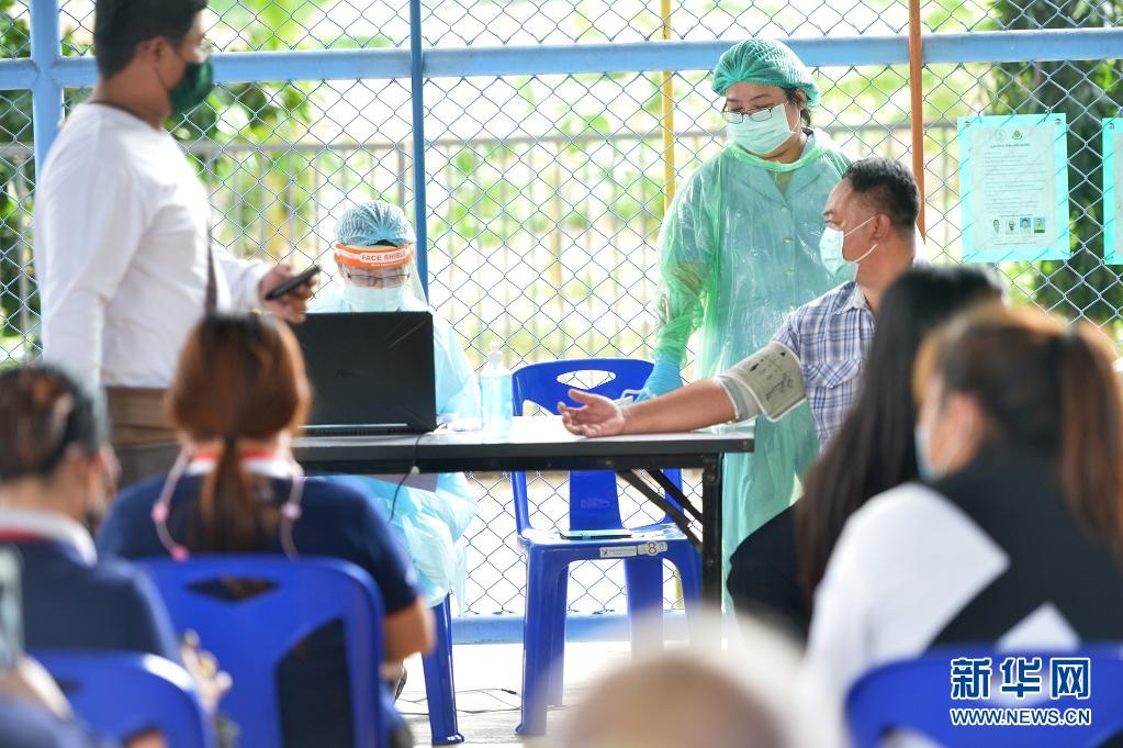 4月7日,居民在泰國曼谷等待接種中國科興新冠疫苗。