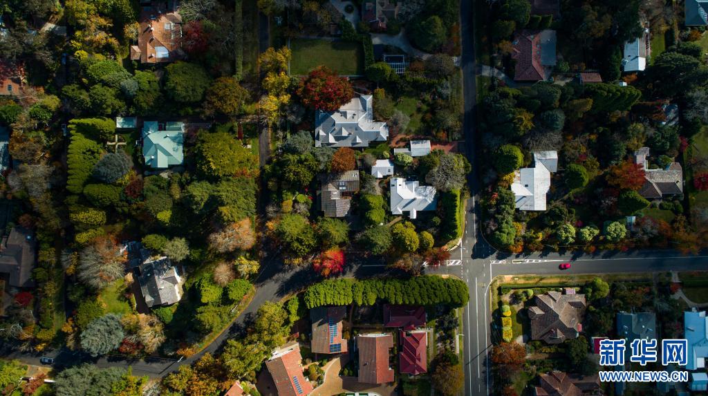這是5月3日在澳大利亞悉尼西部藍山地區拍攝的多彩的街道(無人機拍攝)。
