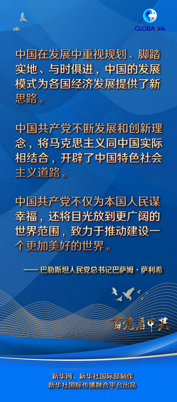 基于多次訪(fǎng)華和對(duì)中國(guó)持續(xù)的觀(guān)察,薩利希對(duì)中國(guó)和中國(guó)共產(chǎn)黨有著直觀(guān)而深刻的認(rèn)識(shí)。他說(shuō):“中國(guó)共產(chǎn)黨不斷發(fā)展和創(chuàng)新理念,將馬克思主義同中國(guó)實(shí)際相結(jié)合,開(kāi)辟了中國(guó)特色社會(huì)主義道路。”