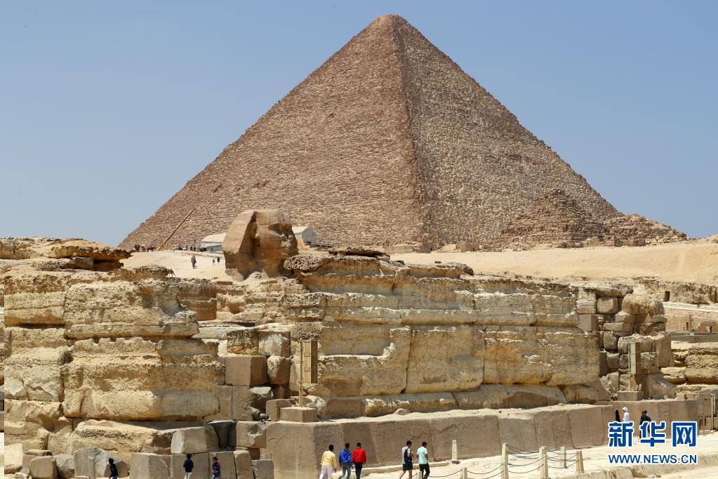 4月26日,游客在位于埃及吉薩省的金字塔群景區內游玩。